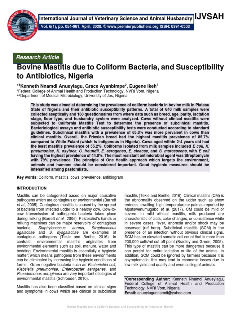 Http Academicjournals Org Article Article1380889405 Husein 20et 20al Pdf from Information on previous studies conducted within ethiopia is not available to compare our test results. Increased resistance to antibiotics is one of the causes of therapeutic failure. A quantitative survey of bacterial persistence in the presence of antibiotics: Learn about the veterinary topic of mastitis in cattle. In 2019, the vmdl processed approximately 51,668 accessions and performed more than 167,000 diagnostic tests. However, considering the high frequency of. Camel mastitis in middle eastern and african horn countries. Susceptibility tests must never be performed on commensal organisms or contaminants because this would mislead the clinician and could result in the patient receiving ineffective and unnecessary antimicrobial therapy, causing possible side effects.