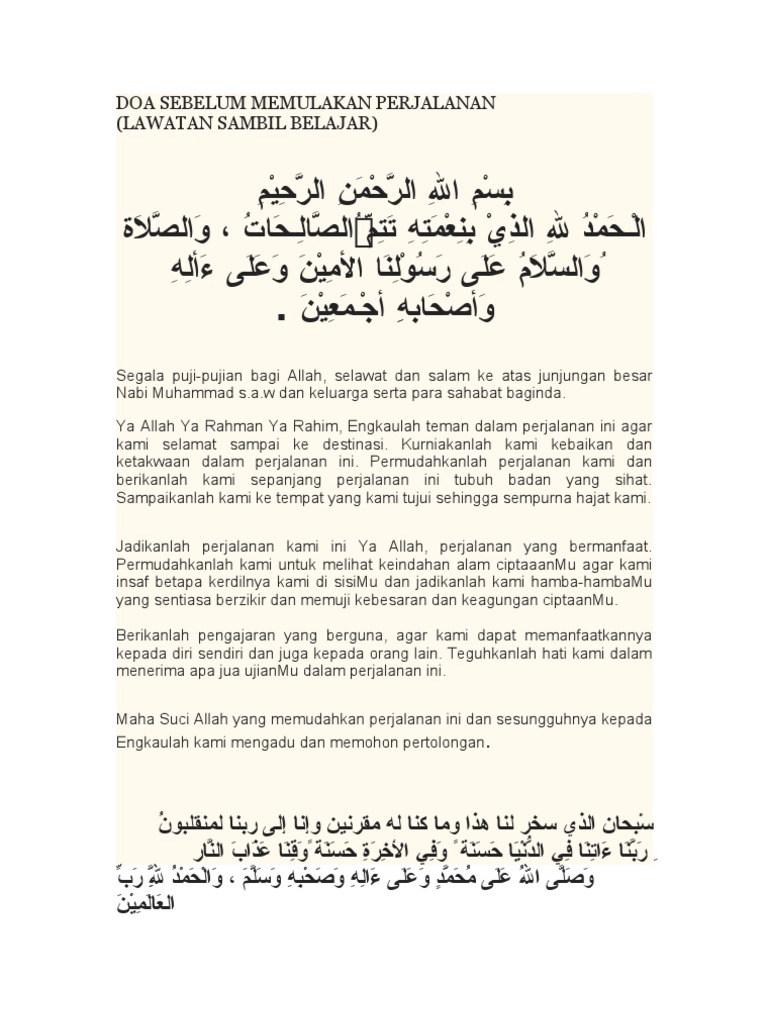 Doa Sebelum Memulakan Kerja : Doa sempena lawatan kerja ksu kkm.. Doa sebelum memulakan kerja dan doa akhir kerja. Sebelum memulakan kerja di pejabat, amalkan doa ini, mohon kepada allah supaya setiap pekerjaan yang dibuat beroleh kebaikan dan dihindarkan daripada keburukannya. Ya allah ya rahman ya rahim, engkaulah teman dalam perjalanan ini agar kami. Doa sebelum memulakan kerja (awal pagi). Saya nak tanya, sekiranya doa tersebut dibaca, dan di aminkan oleh orang ramai, sebutannya allahumma inni ke, allahumma inna?