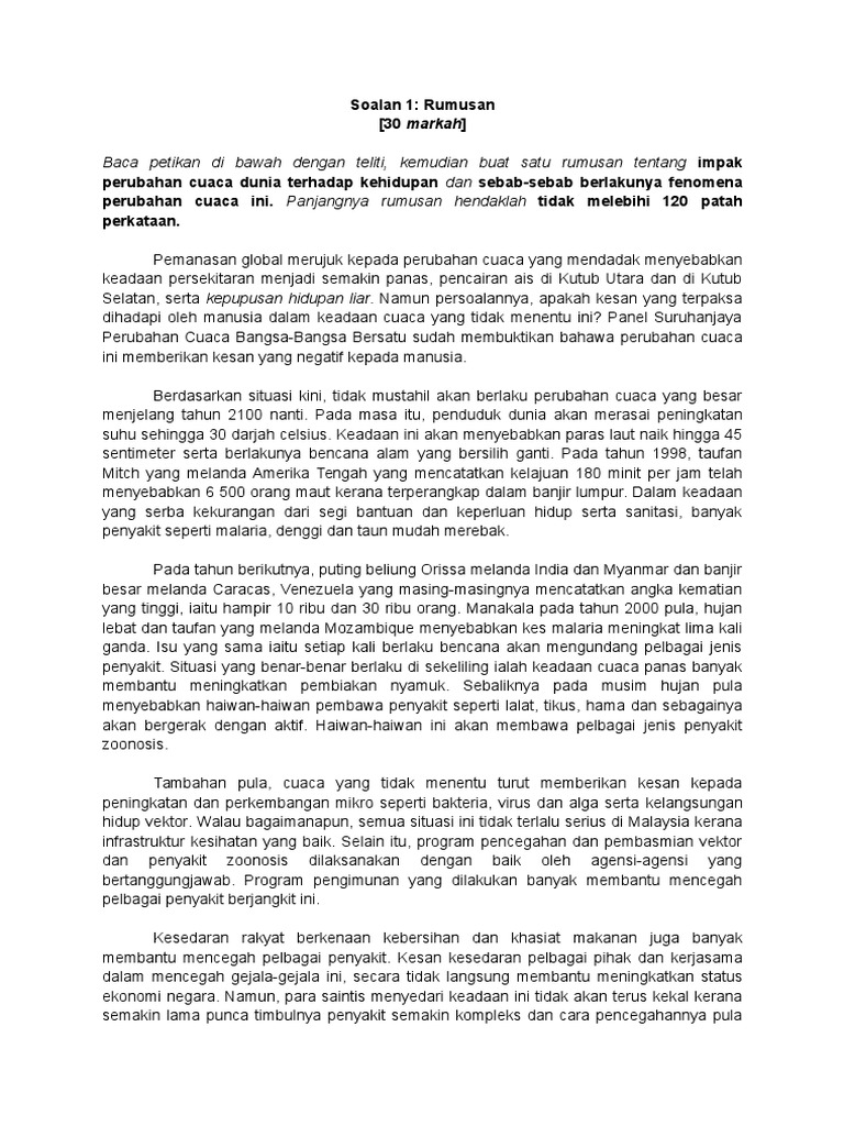 Geografi Tingkatan 2 Bab 9 from banksoalan.online Oleh itu wajar untuk kita kupas apakah kesan pemanasan global terhadap alam sekitar yang merupakan satu satunya habitat kehidupan manusia. For more information and source, see on this link : Hal ini mempengaruhi penyebaran mikroorganisme penyebar penyakit. Walau bagaimanapun, suhu sedunia akan meningkat jika gas rumah hijau di atmosfera meningkatkan dengan terlalu banyak akibat kegiatan manusia. Banyak kesan pemanasan global pada masa ini tidak diketahui kerana hal ini tidak dapat diduga, namun banyak kesan menjadi semakin nyata pada hari ini. Oleh itu wajar untuk kita kupas apakah kesan pemanasan global terhadap alam sekitar yang merupakan satu satunya habitat kehidupan manusia. Selain itu juga, dari segi faktor kesihatan pula, kehidupan yang menerima kesan daripada perubahan iklim dan pemanasan global ini semestinya golongan manusia. Beberapa kesan amatlah langsung seperti kehilangan habitat, tegasan suhu, dan pendedahan kepada cuaca teruk.